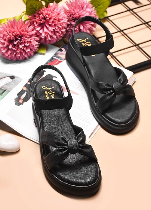 JM LOOKS Women’s Platform Sandals Wedges with Bow Detail 3 Inches Height Perfect for Office Wedding & Daily Uses