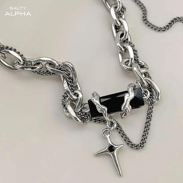 SALTY Alpha Anti Tarnish Stainless Steel Rugged Black Locket Neck Chain for Men | Stylish Pendant Necklace | Jewellery Accessories for Boys | Minimal Jewelry | Gifts for Boyfriend & Husband